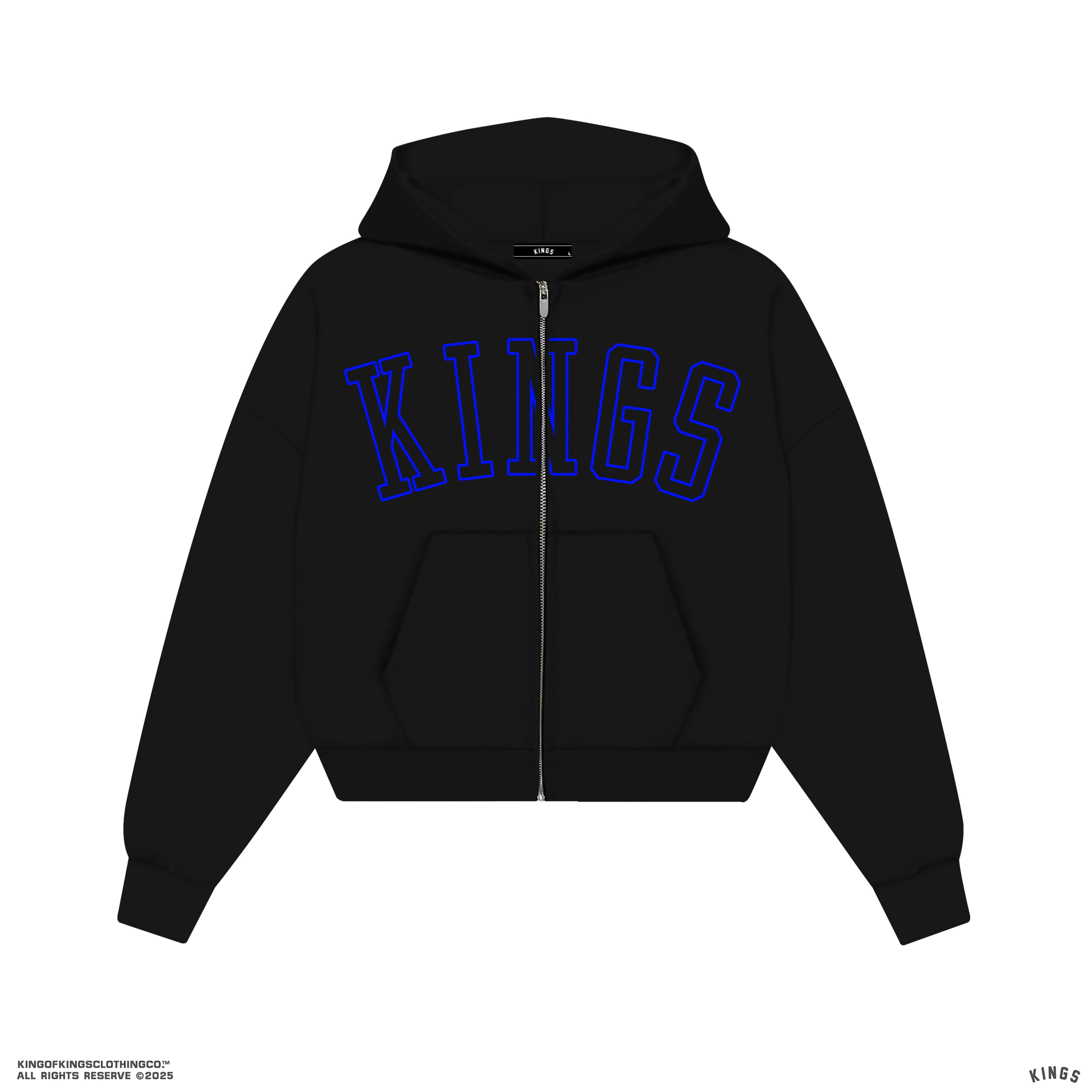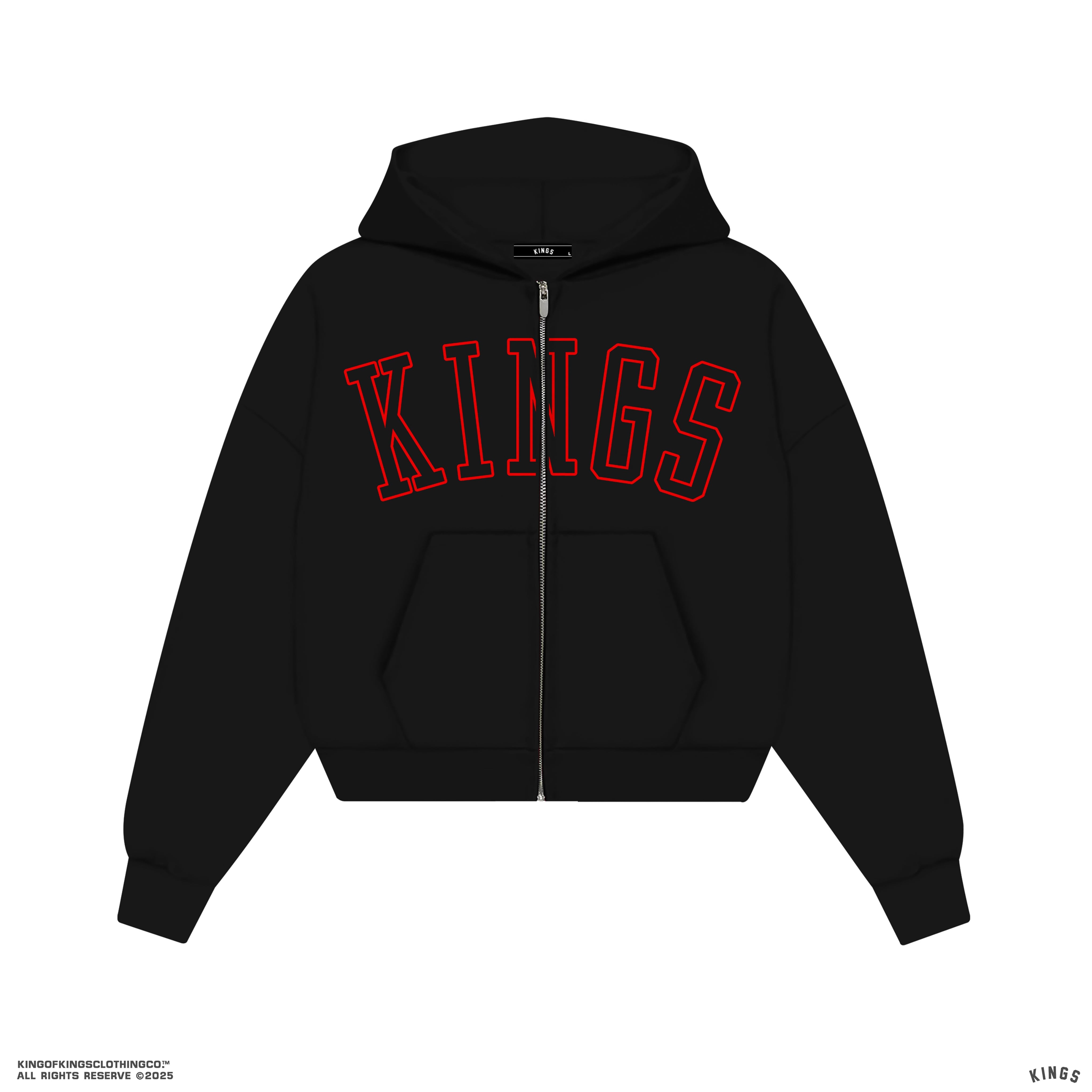 This full-zip hoodie is crafted from 430gsm brushed fleece, delivering a dense, ultra-soft feel made for everyday movement and cold-season comfort. Cut in our signature oversized silhouette, the cropped length gives it a clean, modern street profile, sharp proportions with that unmistakable KINGS® energy.