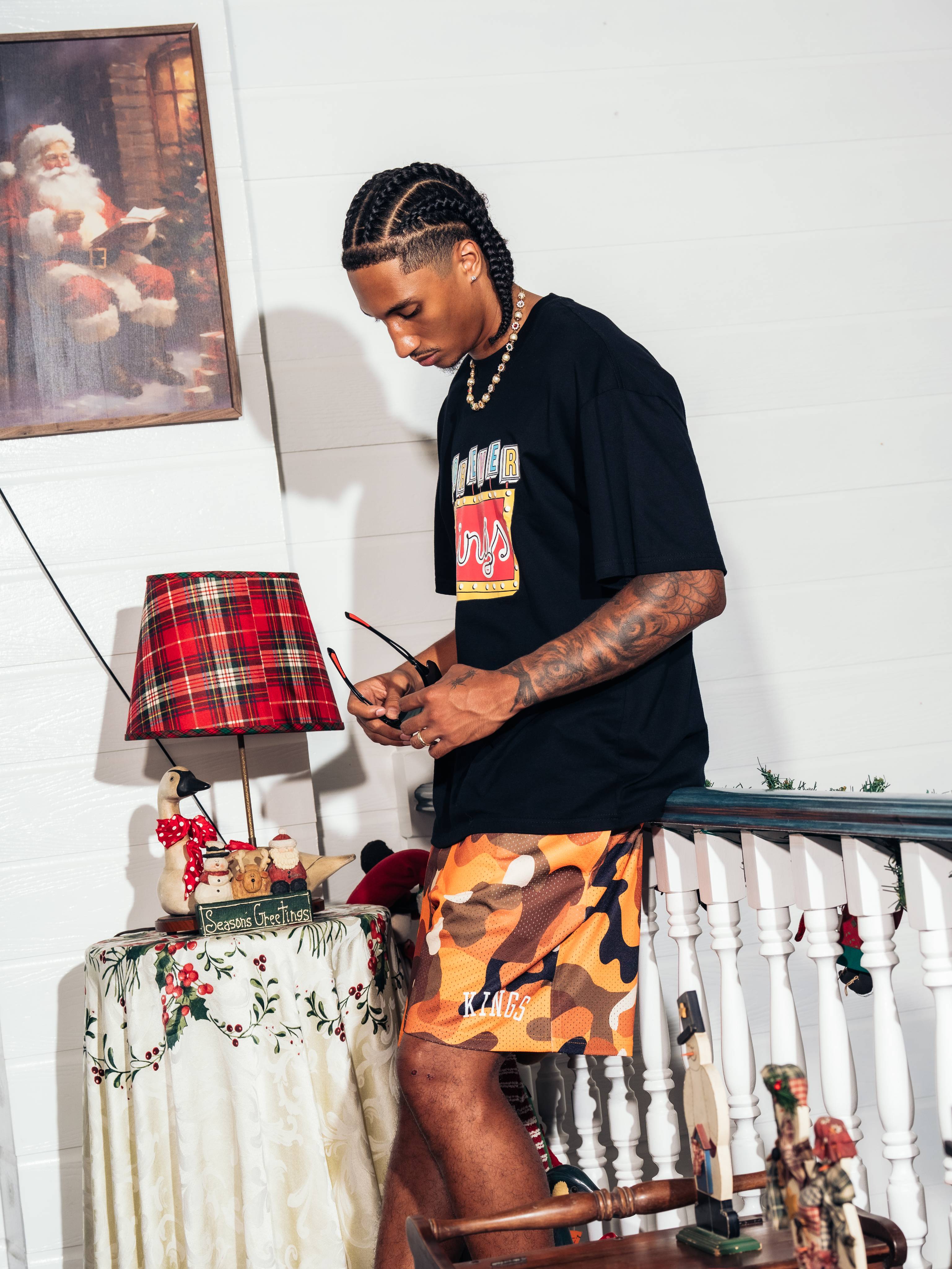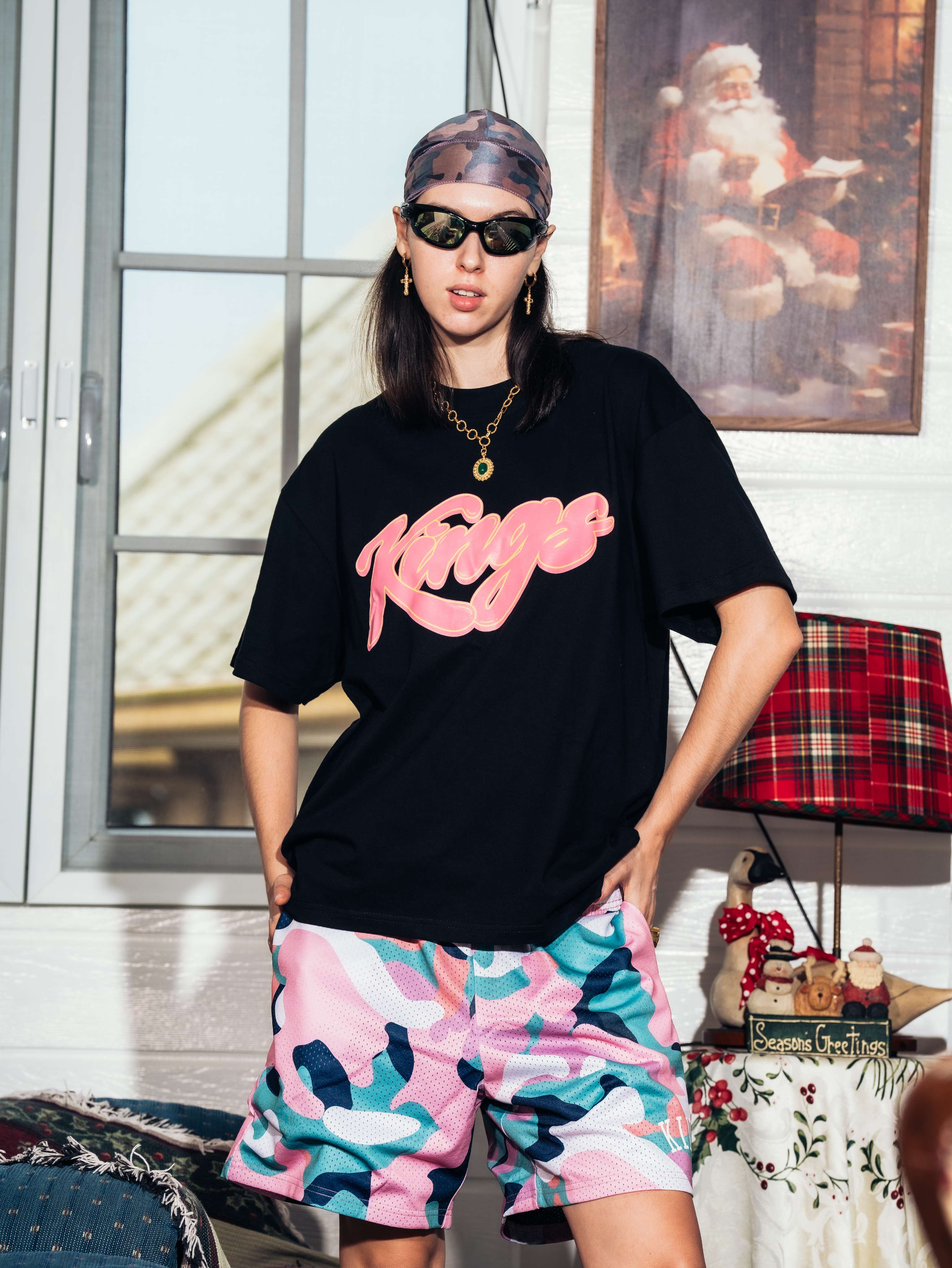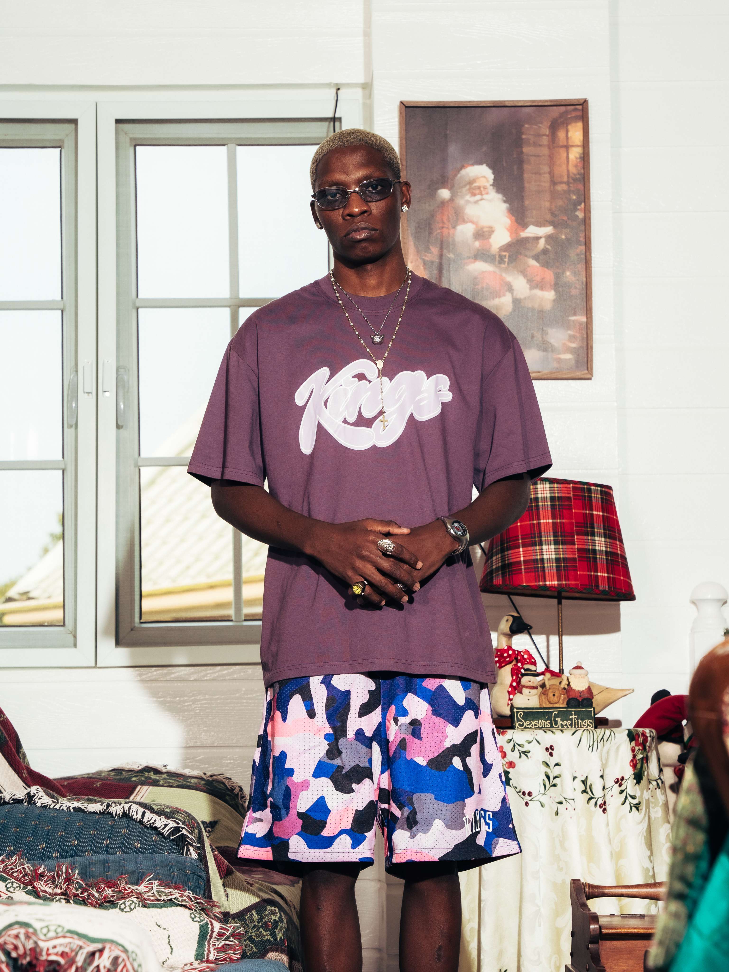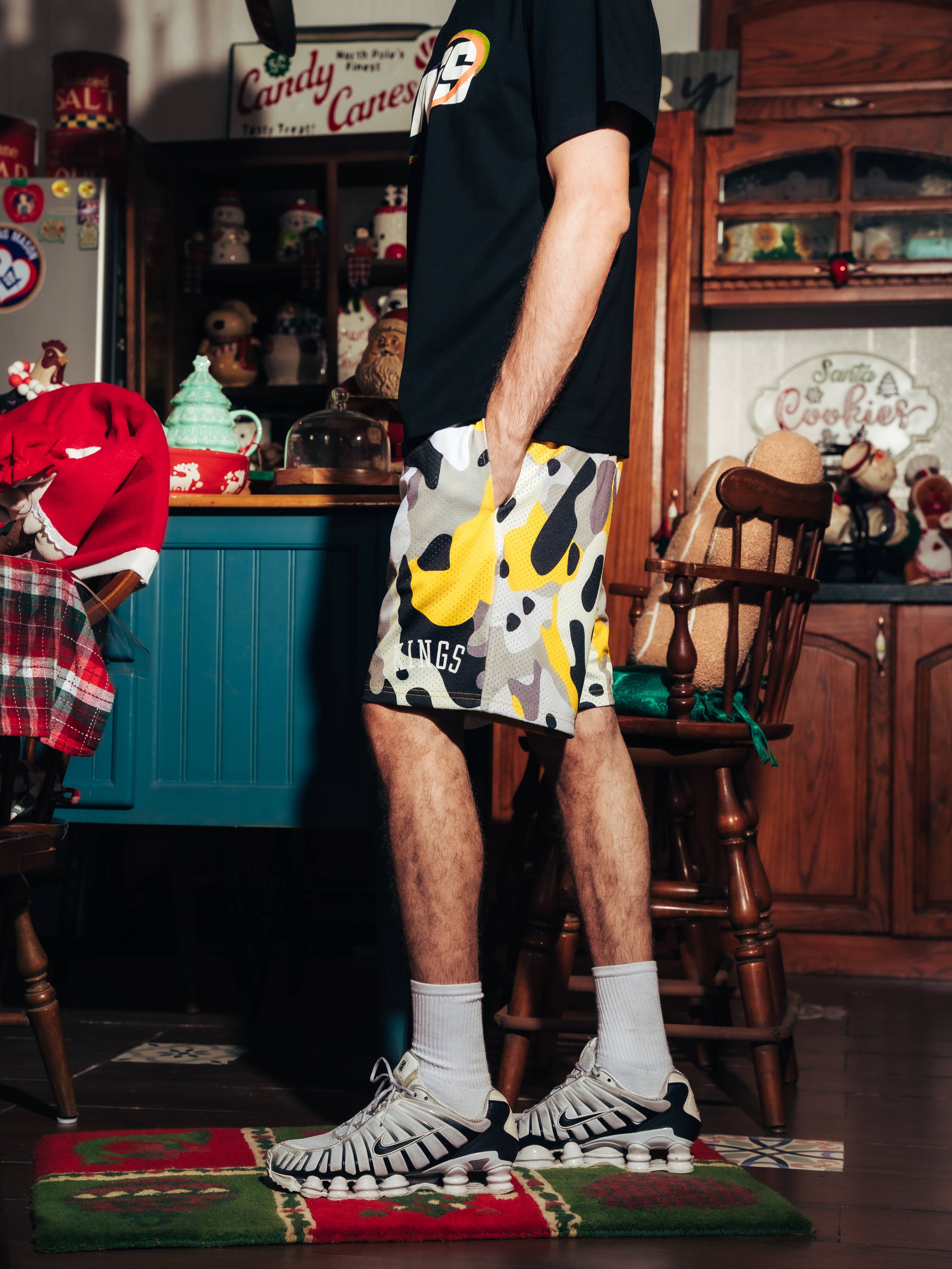 These Kings® Camo Mesh Shorts are crafted from 100% polyester for a lightweight, breathable feel that stays comfortable on and off the court. Finished with bold printed branding and long elastic drawstrings for a secure, adjustable fit. Perfect for training, daily wear, or street-ready layering.