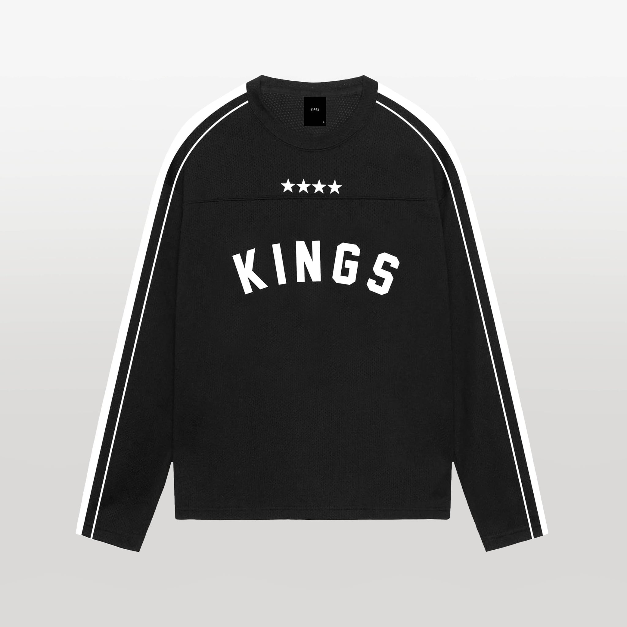 The 4★ ORI Striped L/S Mesh Jersey features a breathable mesh construction accented by contrast sleeve striping and signature star detailing. Finished with bold KINGS® and FOREVER typography, it delivers structure, airflow, and identity in equal measure.