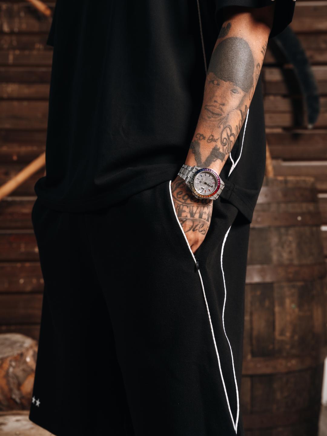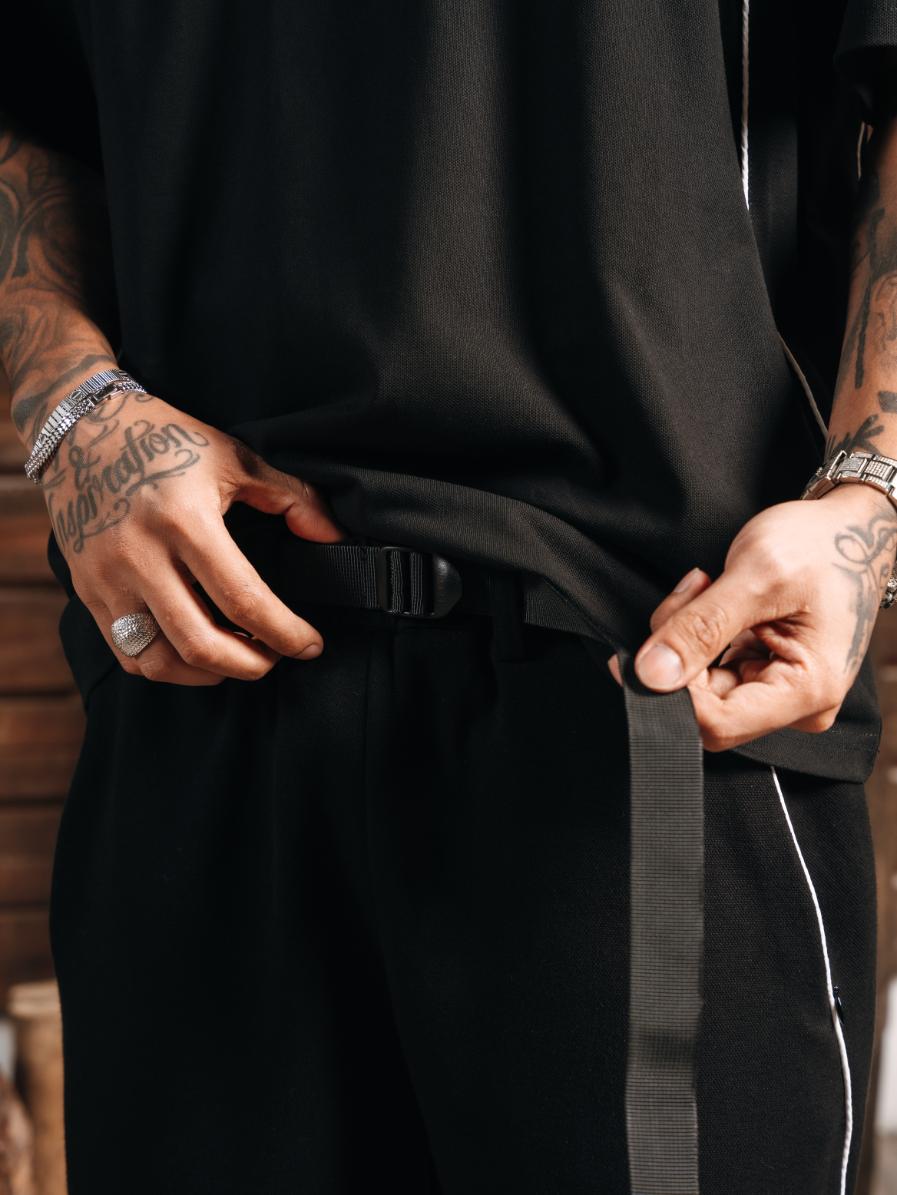 The Piped Performance Jorts feature a structured athletic silhouette highlighted by contrast piping that follows the body’s natural lines. Designed with a built-in strap belt for secure adjustability, this piece balances function, comfort, and control.